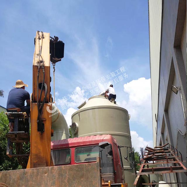 化工生產(chǎn)中常用的吸收法主要是化學(xué)吸收法,采用適當(dāng)?shù)奈談┖突U氣在PP噴淋塔內(nèi)充分接觸,吸收劑將廢氣的有害物質(zhì)吸收,從而將廢氣凈化。例如用水吸收合成樹脂廠的含甲醛尾氣;用堿液循環(huán)法吸收磺化法苯酚生產(chǎn)中的含酚廢氣;酸化吸收液回收苯酚;用水和堿溶液吸收氯醇法環(huán)氧丙烷生產(chǎn)中的次氯酸化塔尾氣,并回收丙烷。