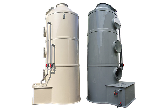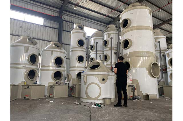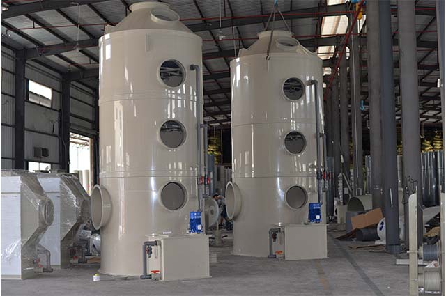 PP噴淋塔也叫做PP洗滌塔、酸霧凈化塔--酸堿廢氣處理設(shè)備;噴淋塔工作原理:廢氣由風(fēng)管引入凈化塔,經(jīng)過(guò)填料層,廢氣與吸收液進(jìn)行氣液兩相充分接觸吸收中和反應(yīng),廢氣經(jīng)過(guò)凈化后,再經(jīng)除霧板脫水除霧后由風(fēng)機(jī)排入大氣。廢氣達(dá)到地方排放標(biāo)準(zhǔn)的排放要求。
