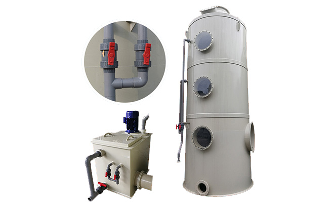 酸霧凈化塔(pp酸霧凈化塔)具有效率高、耐腐蝕性強,高強度、低噪聲、耗電省、體積小,拆裝維修方便,輕巧耐用,外形美觀大方等優(yōu)點。--酸霧凈化塔具有凈化效率高、操作管理簡單、使用壽命長的酸、堿性廢氣凈化工藝與設備。pp酸霧凈化塔具有結(jié)構簡單、能耗低、凈化效率高和適用范圍廣的特點,能有效去除氯化氫氣體(HCl)、硝酸氣體(HNO3)、氟化氫氣體(HF)、氨氣(NH3)、硫酸霧(H2SO4)、鉻酸(CrO3)、氰氫酸氣體(HCN)、堿蒸氣(NaOH)、硫化氫氣體(H2S)、等水溶性氣體。采用氫氧化鈉為吸收中和液,溶液濃度為8%-16%。 酸霧廢氣由風管引入廢氣凈化塔,經(jīng)過填料層,廢氣與氫氧化鈉吸收液進行氣液兩相充分接觸吸收中和反應,酸霧廢氣經(jīng)過酸霧凈化塔凈化后,再經(jīng)除霧板脫水除霧后由風機排入大氣。吸收液在廢氣塔底部經(jīng)水泵增壓后在廢氣塔頂部噴淋而下,最后回流至廢氣塔底部循環(huán)使用。酸霧廢氣經(jīng)過凈化后達到排放標準要求。