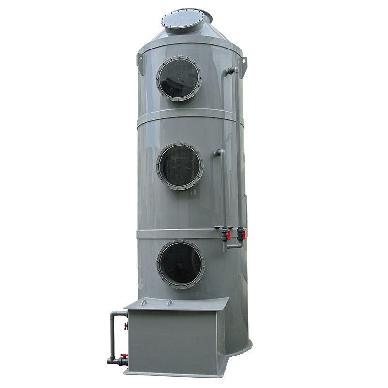PPs阻燃噴淋塔廢氣處理原理:PPs噴淋塔處理廢氣機制為氣液逆流接觸。以酸性廢氣為例,酸性廢氣由塔底進(jìn)入,pp噴淋塔循環(huán)水泵開啟后,水箱內(nèi)堿性液體由塔頂進(jìn)入,經(jīng)過噴淋裝置(噴嘴)噴成霧狀或雨滴狀;氣液逆流,在填料層酸堿中和。凈化后氣體經(jīng)過除霧大小頭后排出。--噴淋塔的結(jié)構(gòu)組成:酸堿廢氣塔分單塔體和雙塔體以及立式噴淋塔與臥式噴淋塔。用法蘭分段連接而成。具體由貯液箱、塔體、進(jìn)風(fēng)段、噴淋層、填料層、旋流除霧層、出風(fēng)錐帽、觀檢孔等組成。